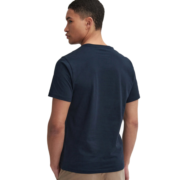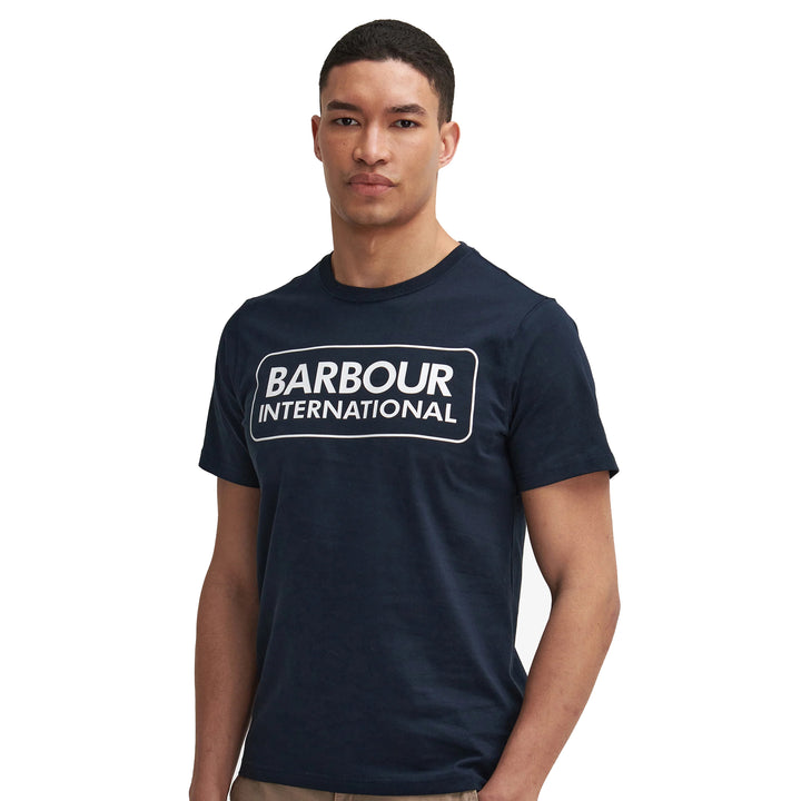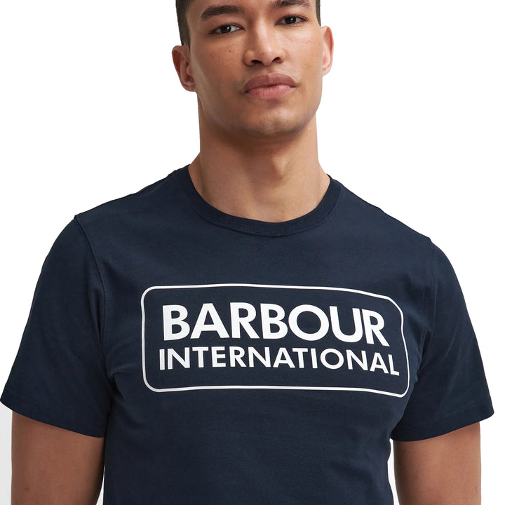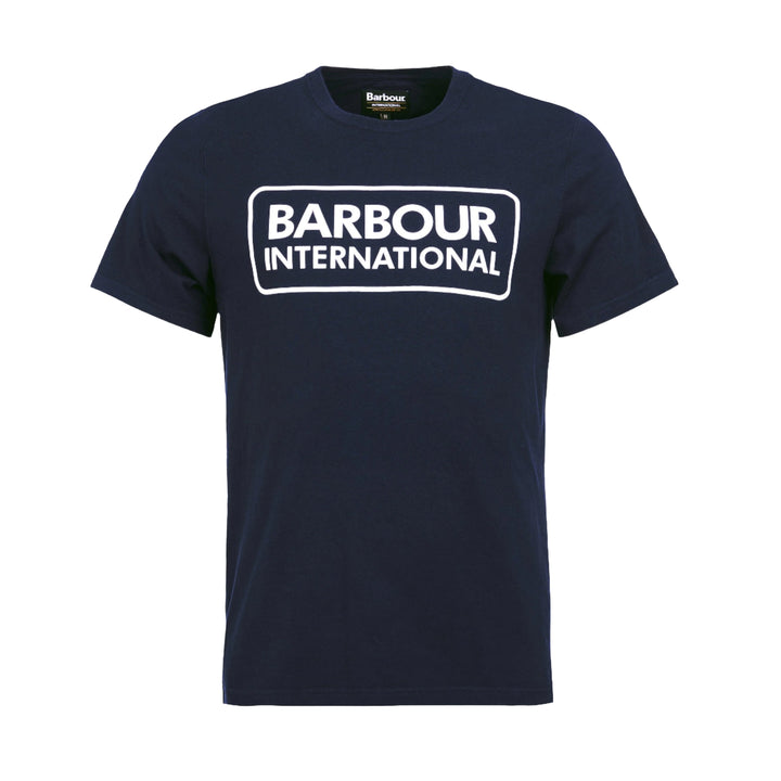 The Barbour International Essential Large Logo T-Shirt in Navy is constructed from 100% cotton, ensuring a soft and comfortable texture. It boasts a tailored fit, complemented by short sleeves and a ribbed neckline. The standout feature is the prominent Barbour International logo printed on the chest, establishing this piece as a sophisticated and indispensable addition to any wardrobe.