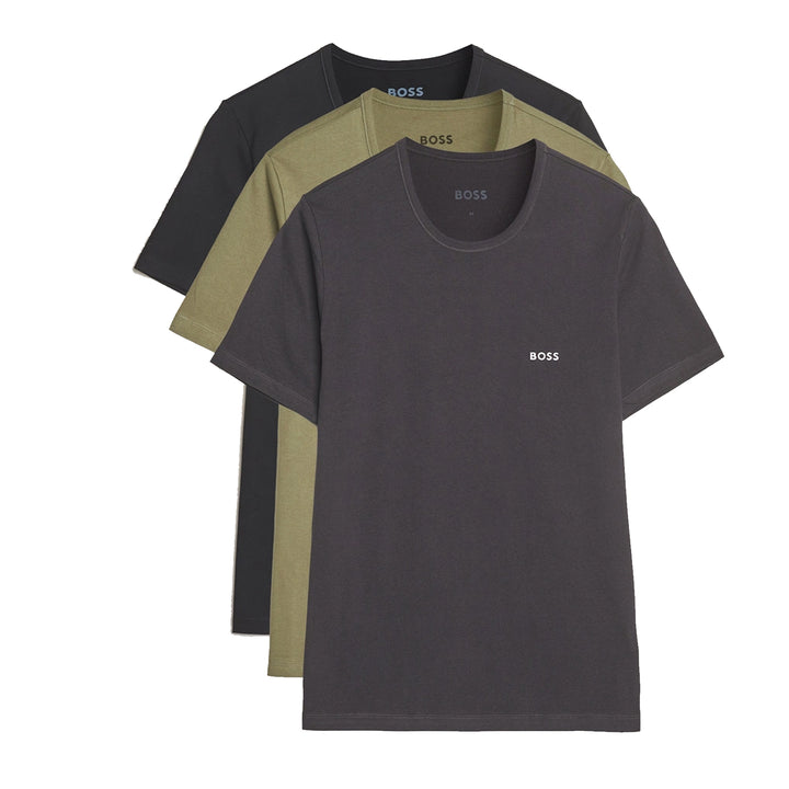 BOSS 3 Pack Cotton T-Shirts Black/Dark Grey/Khaki Green