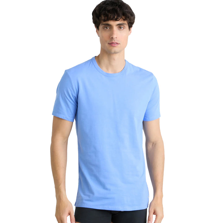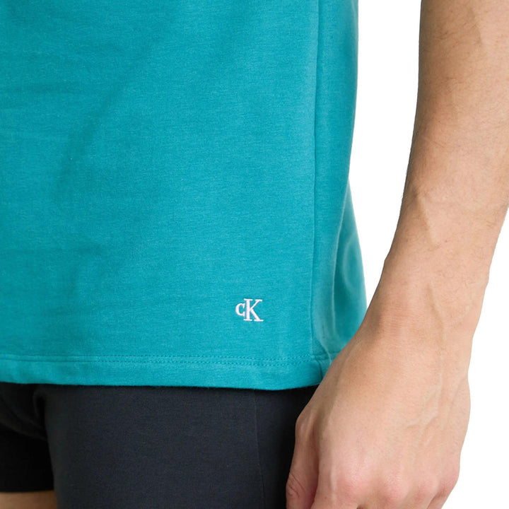 This trio of Calvin Klein cotton t-shirts in Buff Pink/Bayou/Glacier offers slim fit silhouettes crafted from pure cotton jersey for optimal breathability. Designed as versatile day-to-night loungewear, each piece features the distinctive Calvin Klein embroidery at the hem, combining classic styling with premium comfort.
