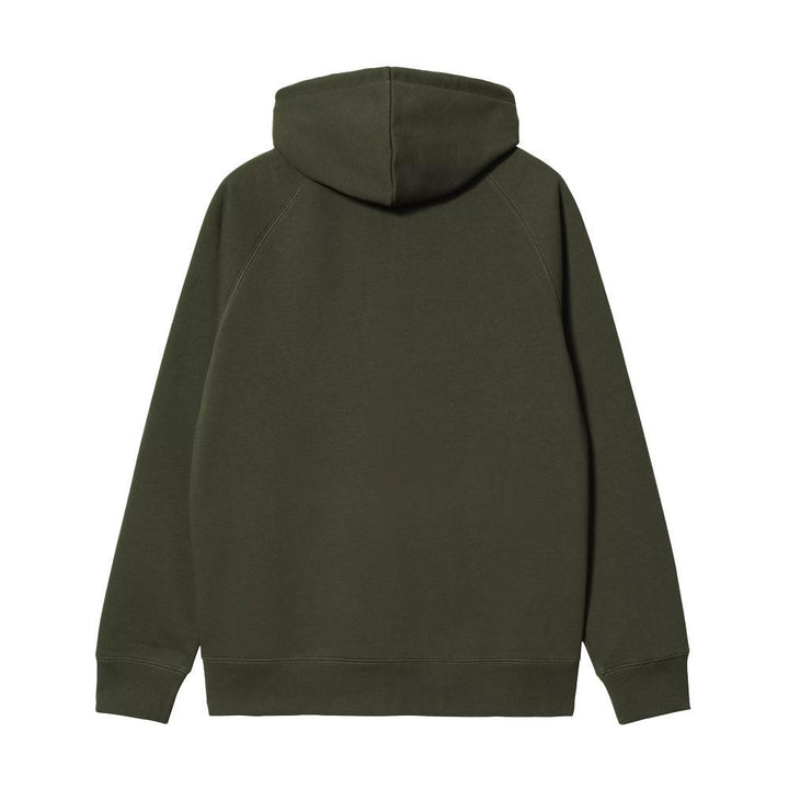 Indulge in the luxury of the Carhartt WIP Hooded Chase Jacket Olive/Gold, made from thick polycotton jersey and tailored for a regular fit. The plush, brushed fabric resembles fleece and the detailed craftsmanship, such as the raglan sleeves and flatlock stitching, adds an air of sophistication. The iconic embroidered 'C' Logo adorns the left sleeve, elevating this jacket to a true work of art.
