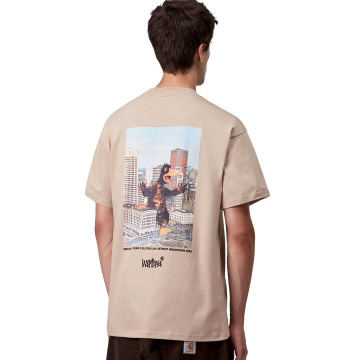 The Carhartt WIP Wiptopia T-Shirt Wall features a relaxed fit crafted from soft cotton jersey. Bold graphic designs decorate both the front and back, making a striking statement.