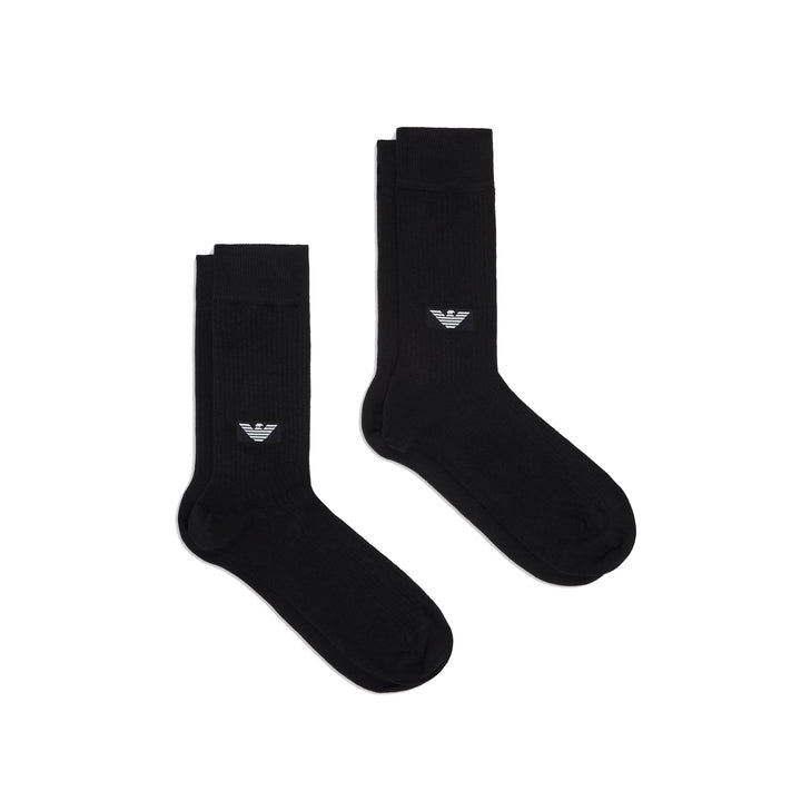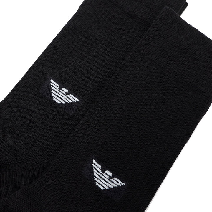Emporio Armani 2 Pack Eagle Ribbed Socks Black