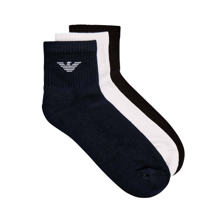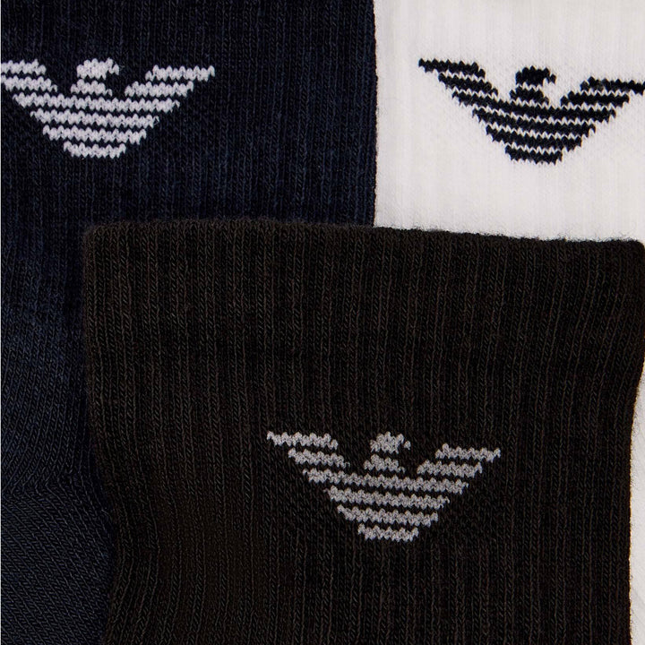 Emporio Armani 3 Pack Ribbed Eagle Logo Socks Black/White/Navy