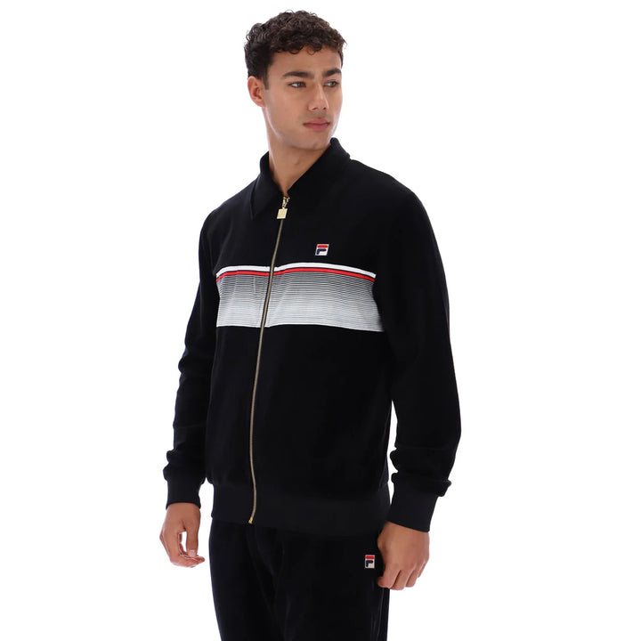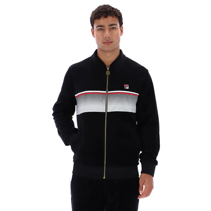 Fila Malakai Stripe Velour Track Top Jacket Black/Gardenia/Fila Red