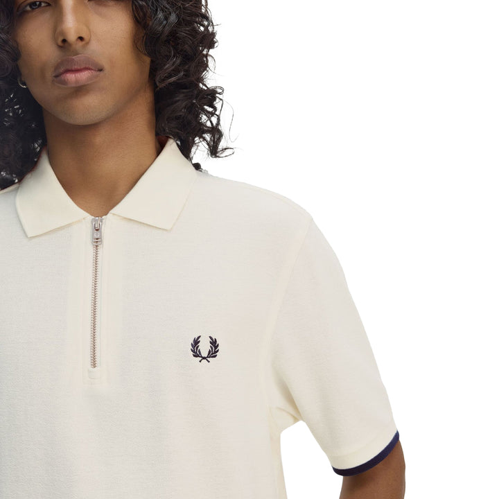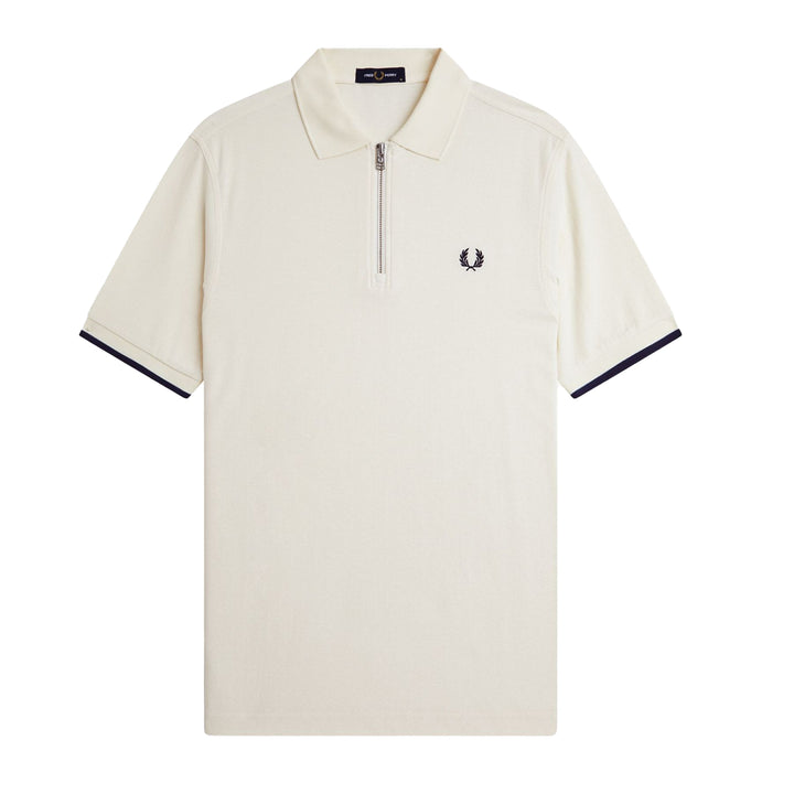 Fred Perry Crepe Pique Zip Neck Polo Shirt Ecru