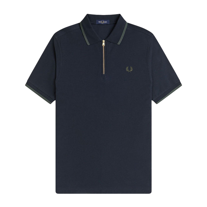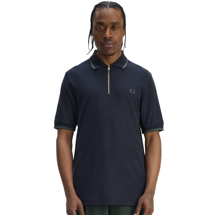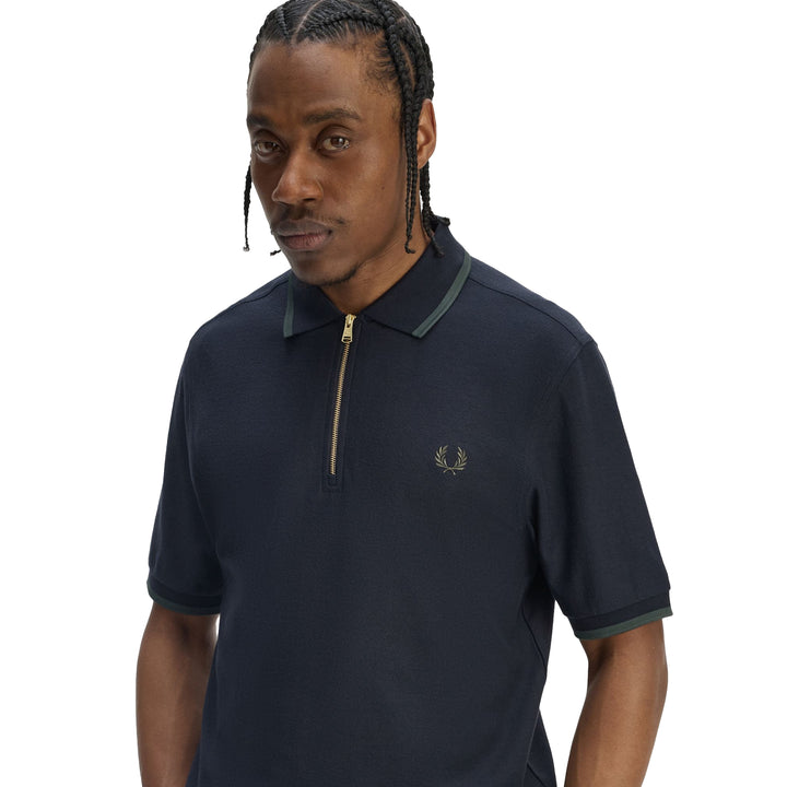 Fred Perry Crepe Pique Zip Neck Polo Shirt Navy