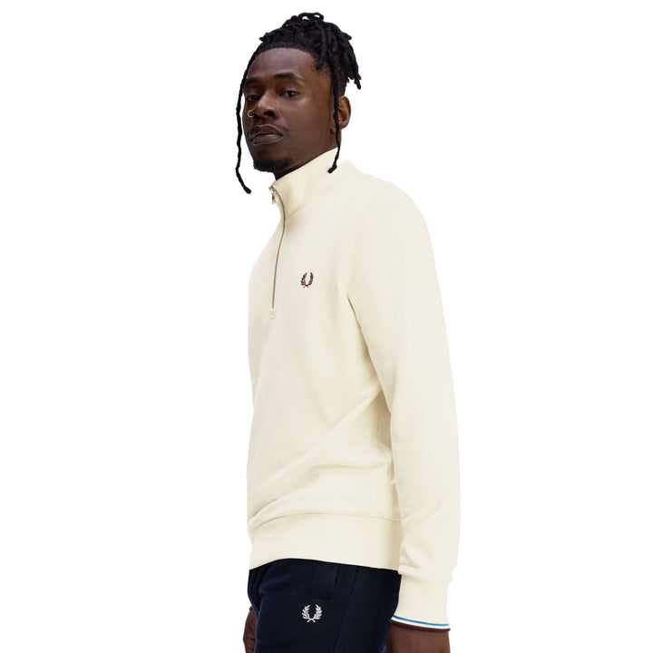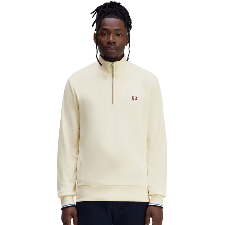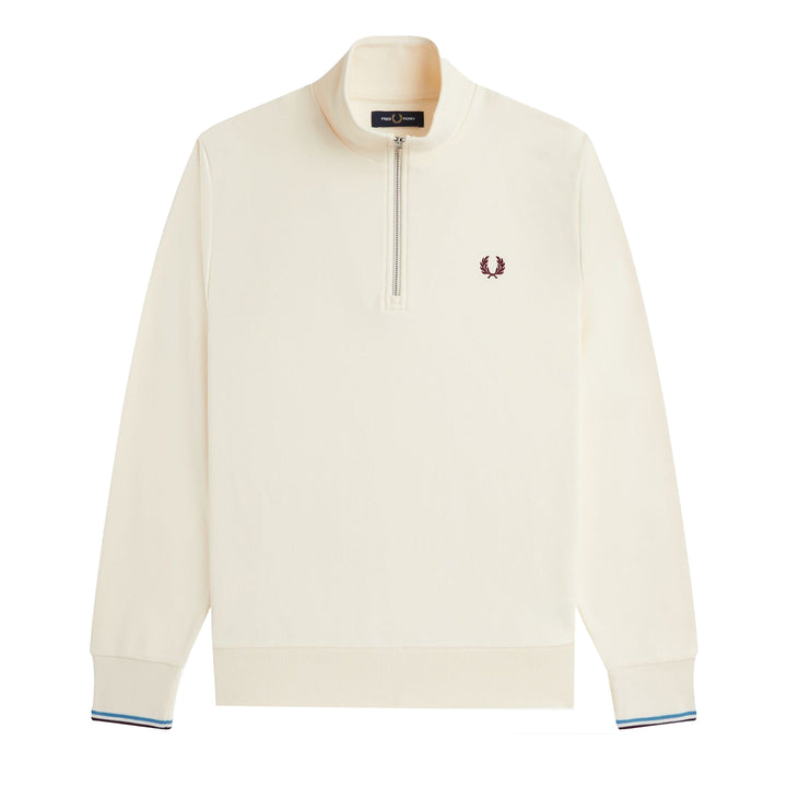 Fred Perry Half Zip Sweatshirt Ecru/Court Blue/Oxblood