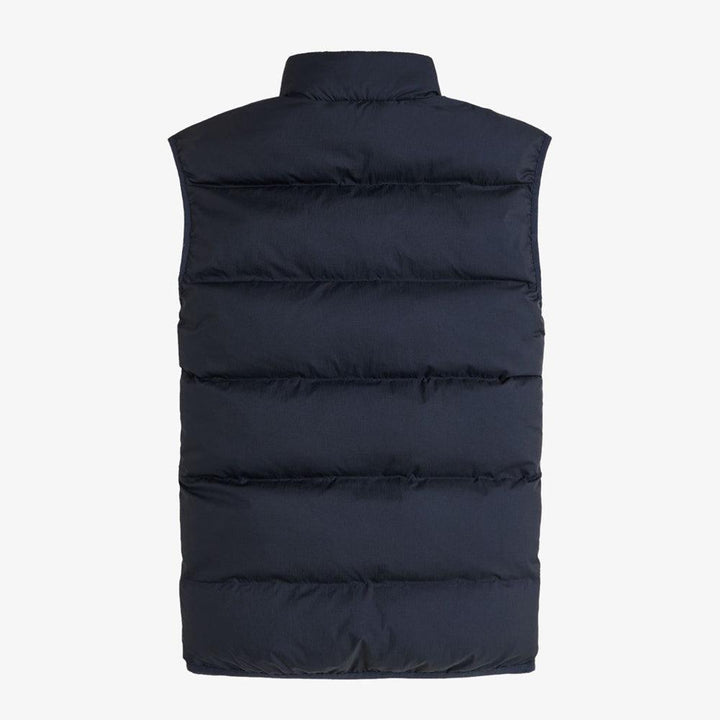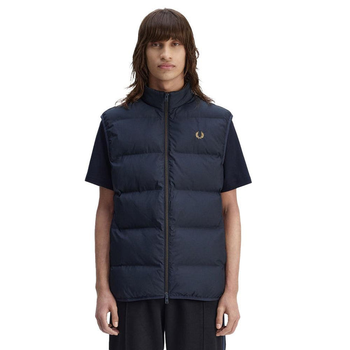 Crafted from recycled nylon ripstop with a refined polyester lining, this Fred Perry gilet delivers understated elegance in a regular fit silhouette. The Navy hue is complemented by contrast stitching on the zip and branded puller, whilst functional welt pockets provide practical storage. Elasticated trims ensure a tailored finish, and the iconic embroidered Laurel Wreath logo signals timeless heritage. An insulated padded construction offers subtle warmth without compromising on style.