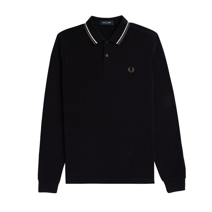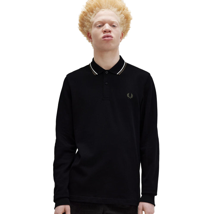 Fred Perry Long Sleeve Twin Tipped Polo Shirt Black/Ecru/Green