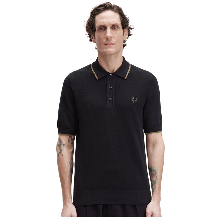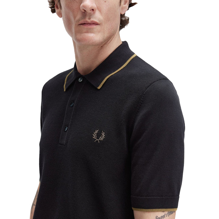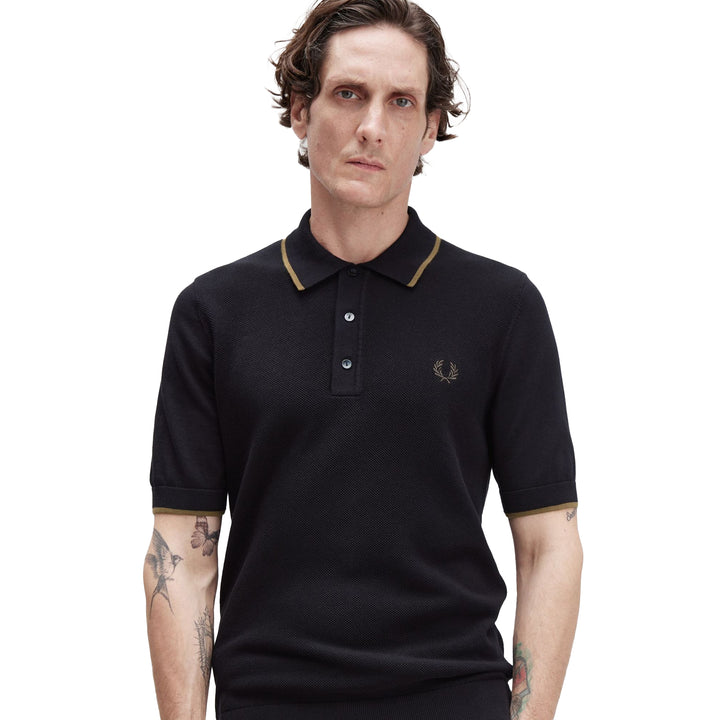 Fred Perry Pique Stitch Knitted Polo Shirt Black