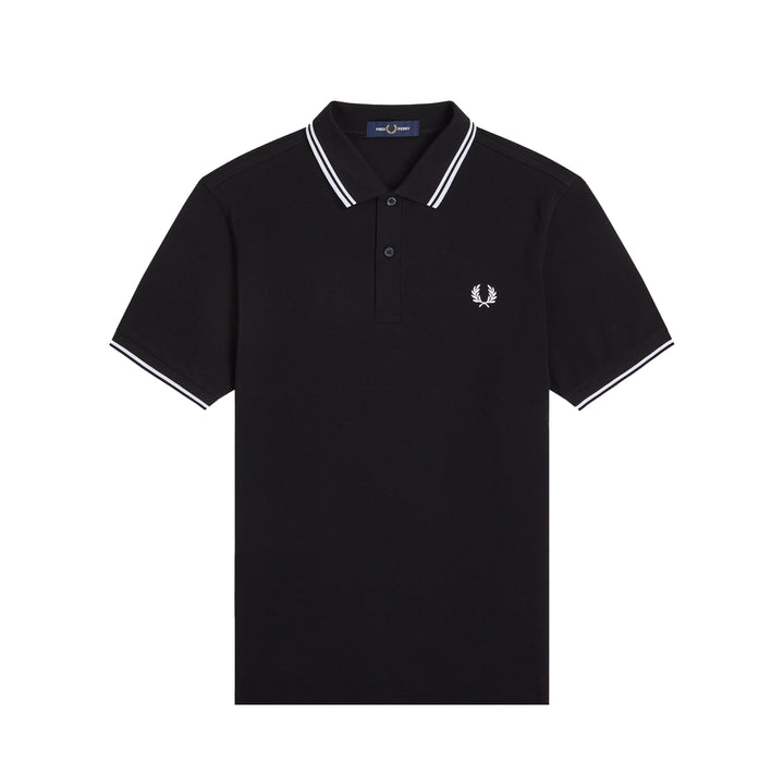 The Fred Perry Twin Tipped Polo Shirt in black features a regular fit design crafted from premium cotton piqué. Distinguished by its signature twin-tipped collar and cuffs, this classic piece includes a practical two-button placket. The iconic Laurel Wreath embroidery completes this quintessential Fred Perry garment.