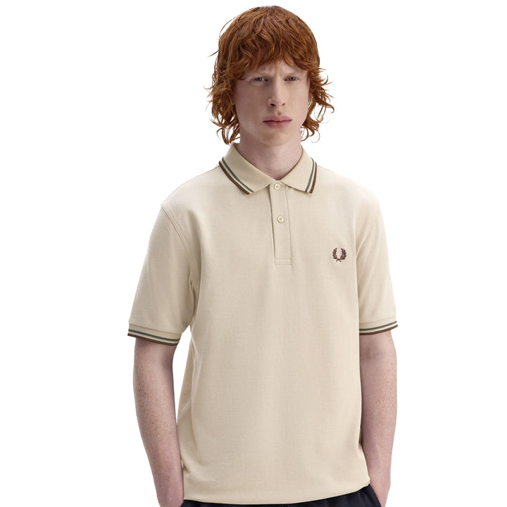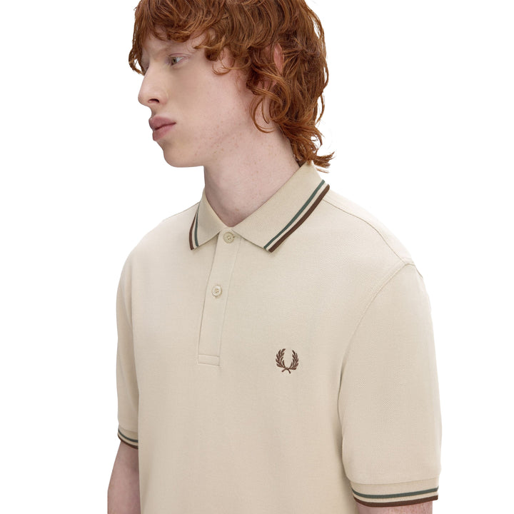 Fred Perry Twin Tipped Polo Shirt Warm Oat/Court Green/Burnt Tobacco
