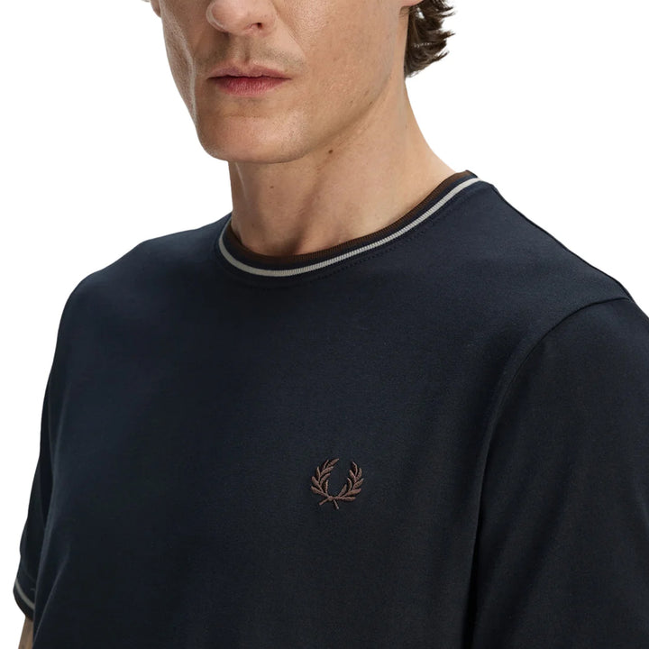 Fred Perry Twin Tipped T-Shirt Navy/Warm Oat/Burnt Tobacco
