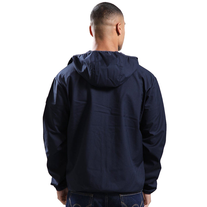 The Napapijri A-Biois Softshell Jacket delivers technical performance in a refined navy silhouette. Engineered from advanced polyester softshell fabric, it offers superior breathability and thermal insulation for variable conditions. The relaxed cut accommodates layering, whilst elasticated hood, cuff closures, and hem provide adaptive fit and weather sealing. A full-length zip facilitates ventilation control, complemented by dual zippered front pockets for secure storage. Branded with the signature Bollo arm badge and Napapijri Geographic chest graphic, this jacket represents the brand's commitment to functional design and outdoor heritage.