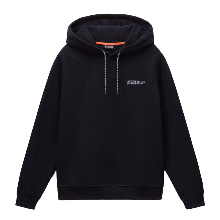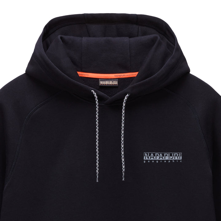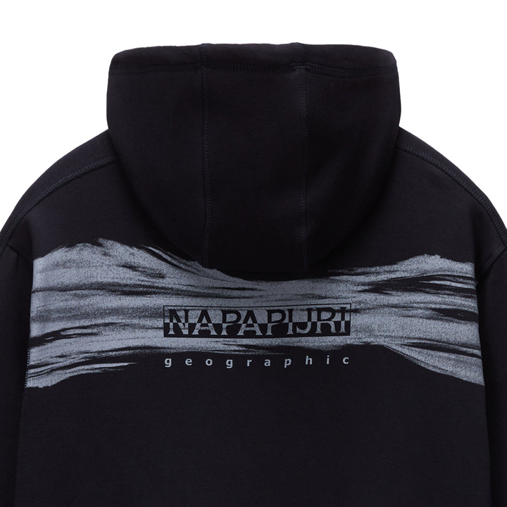 The Napapijri Back Graphic Hoodie in Black features a relaxed silhouette and an adjustable drawstring hood for ultimate comfort. Made mainly from cotton, this bold urban streetwear piece is energised by striking seasonal Napapijri graphics on both front and back.