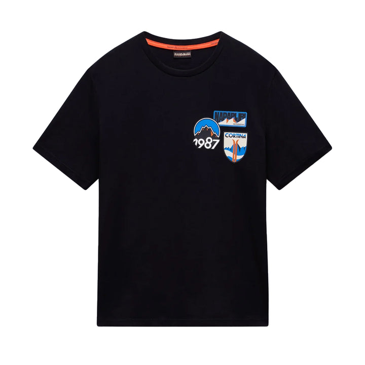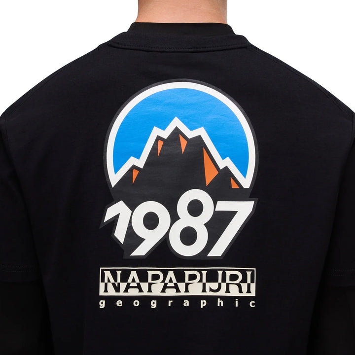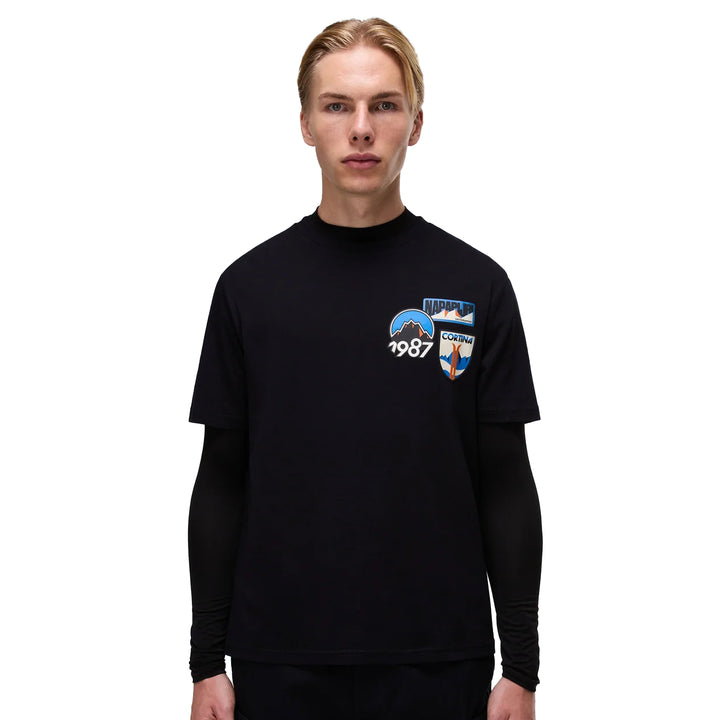 Experience ultimate comfort with the Napapijri Montepiana Graphic T-Shirt in Black, designed with a relaxed fit and made from 100% soft cotton. Its classic crew neck and short sleeves offer timeless appeal, while the vintage mountain graphics on both front and back celebrate outdoor heritage. Perfectly balancing style and practicality, this tee is an essential addition to your wardrobe.