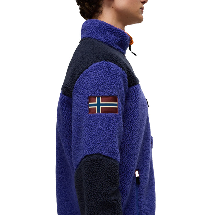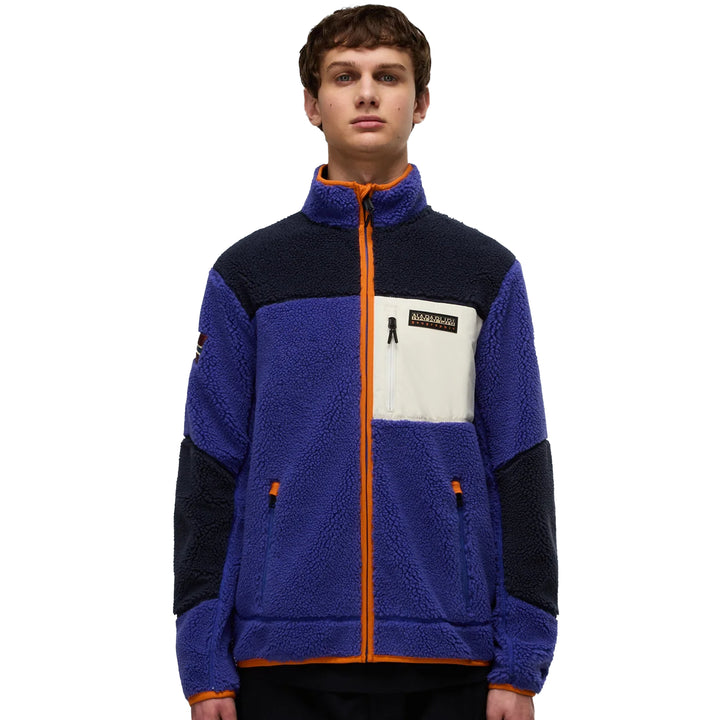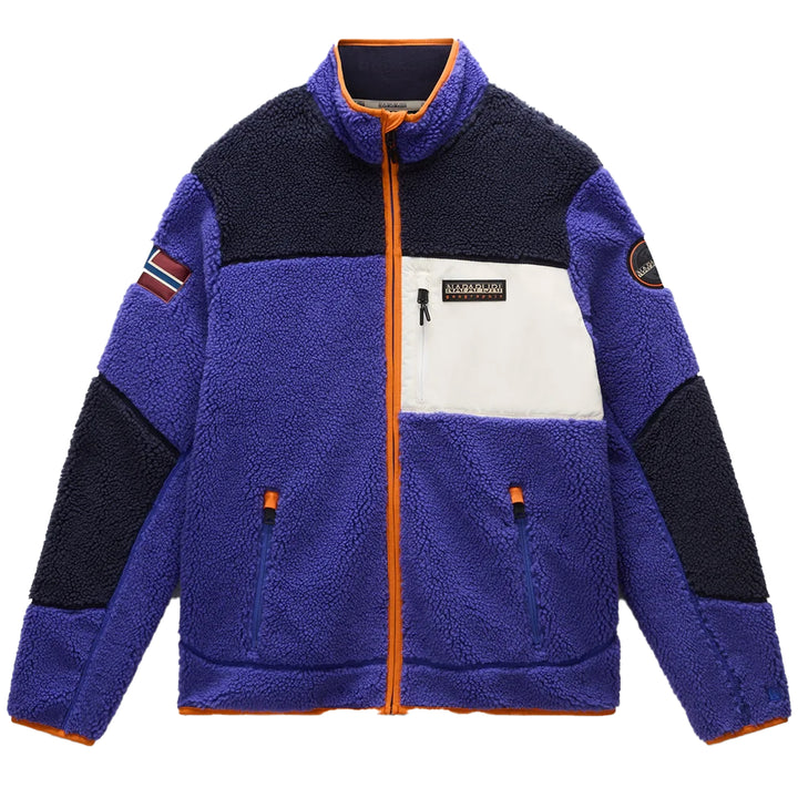 The Napapijri Yupik Full Zip Fleece Jacket in Purple/Multi offers a regular fit construction from 100% polyester. It features a striking contrast colour block design, secure zipped pockets, and elasticated trims for enhanced fit and comfort.