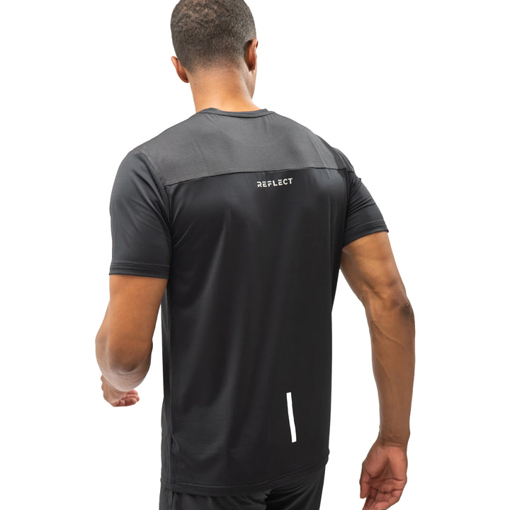 The REFLECT Freedom 3.0 T-Shirt Black delivers a comfy regular fit made from lightweight, stretchy technical fabric that moves with you. It features a crew neck, short sleeves, and stylish eyesbrid fabric with ripstop panels on the back. Reflective prints on the front and back keep you visible and vibrant, no matter the time of day.