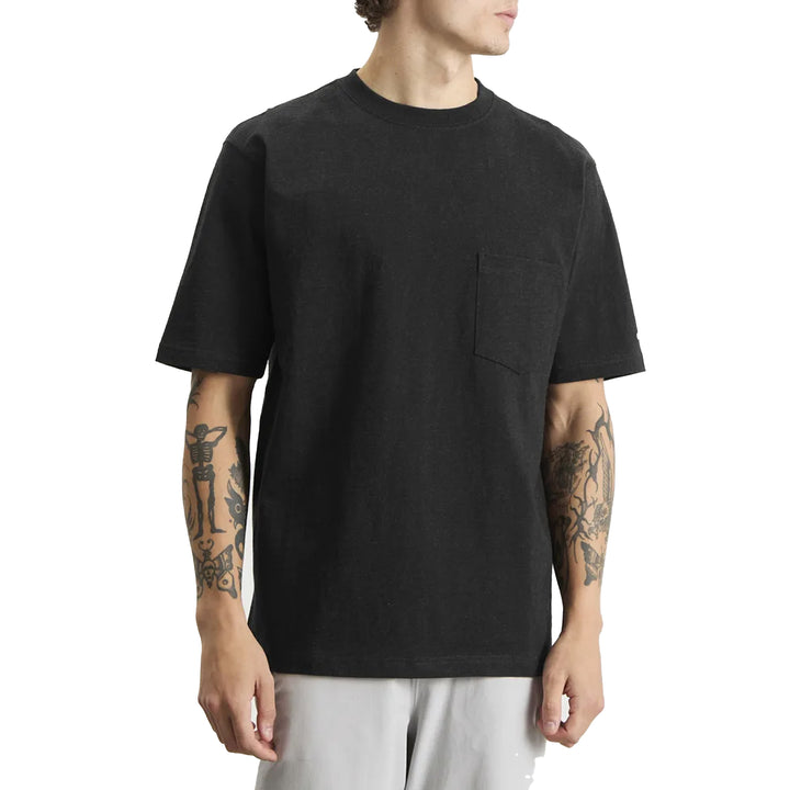 Built from recycled cotton that feels incredibly soft and resists pilling, this short sleeve heavy cotton t-shirt is designed for everyday comfort. The crew neckline, chest pocket, and straight hem offer understated style, while the slightly relaxed fit ensures you can move freely. A versatile black piece that works as a standalone layer or under a jacket.